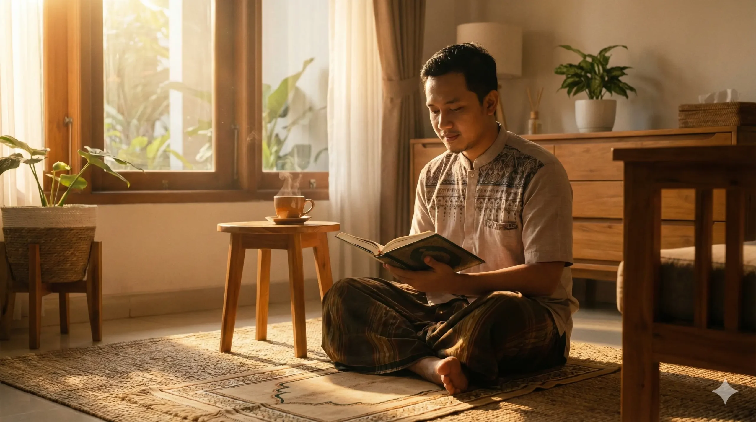 • Bersuci (Wudhu): Meskipun sebagian ulama membolehkan membaca tanpa wudhu (selama tidak menyentuh mushaf), namun kondisi suci jauh lebih utama dan bentuk penghormatan tertinggi.