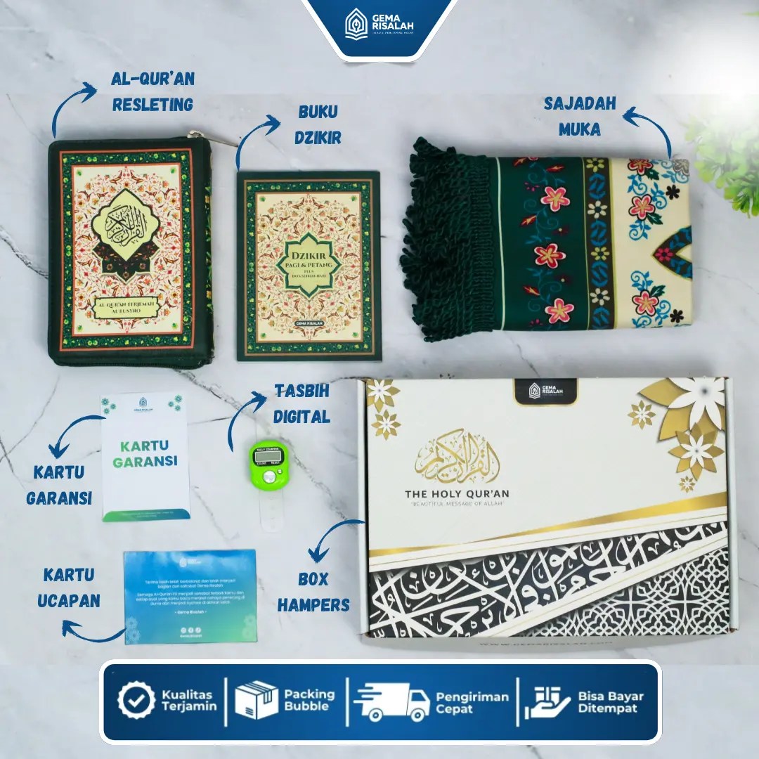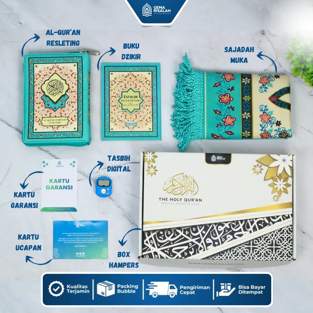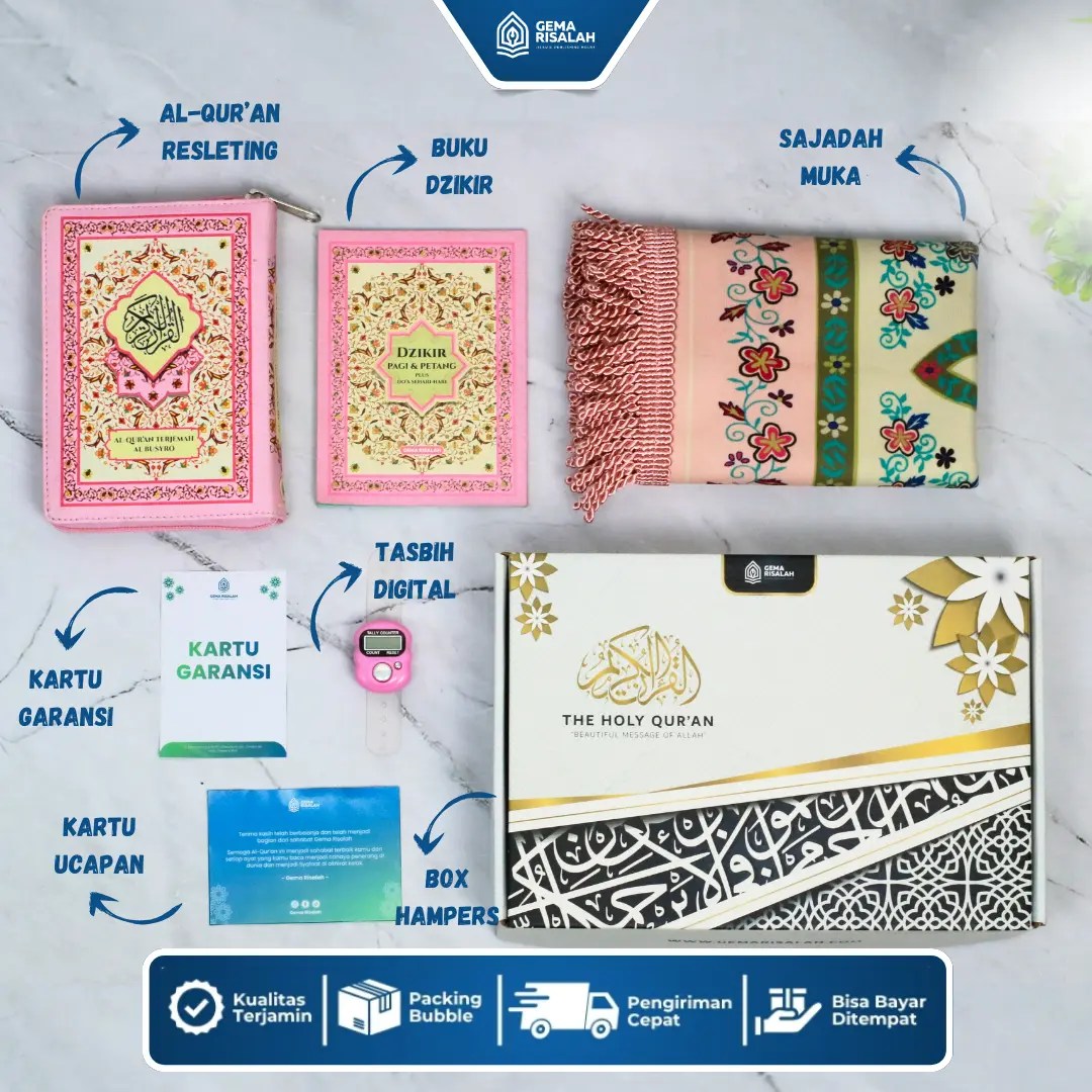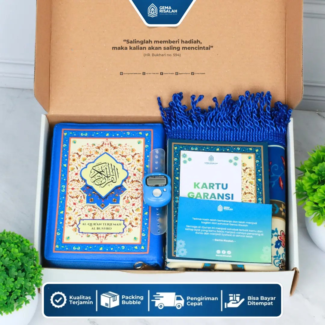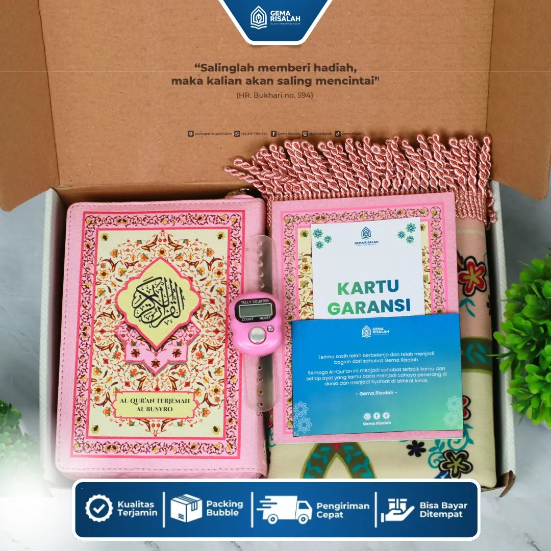 Hampers Set Ibadah Al-Quran Saku Resletinng Terjemah Al-Busyro adalah Pilihan Tepat untuk memberikan hadiah yang bukan hanya bernilai keindahan, namun juga bernilai kebaikan