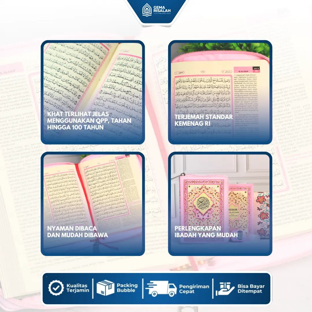 Hampers Gift Set Ibadah Quran Saku Terjemah Al-Busyro Resleting A6